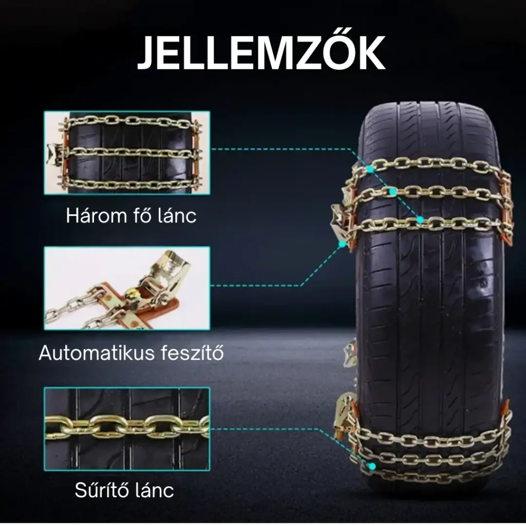 Könnyű, egyszerűen felszerelhető és azonnali hatás. Nem kell nehéz hóláncokat cipelned, nem kell segítséget keresned – felrakod, elindulsz, majd néhány másodperc alatt leveszed.