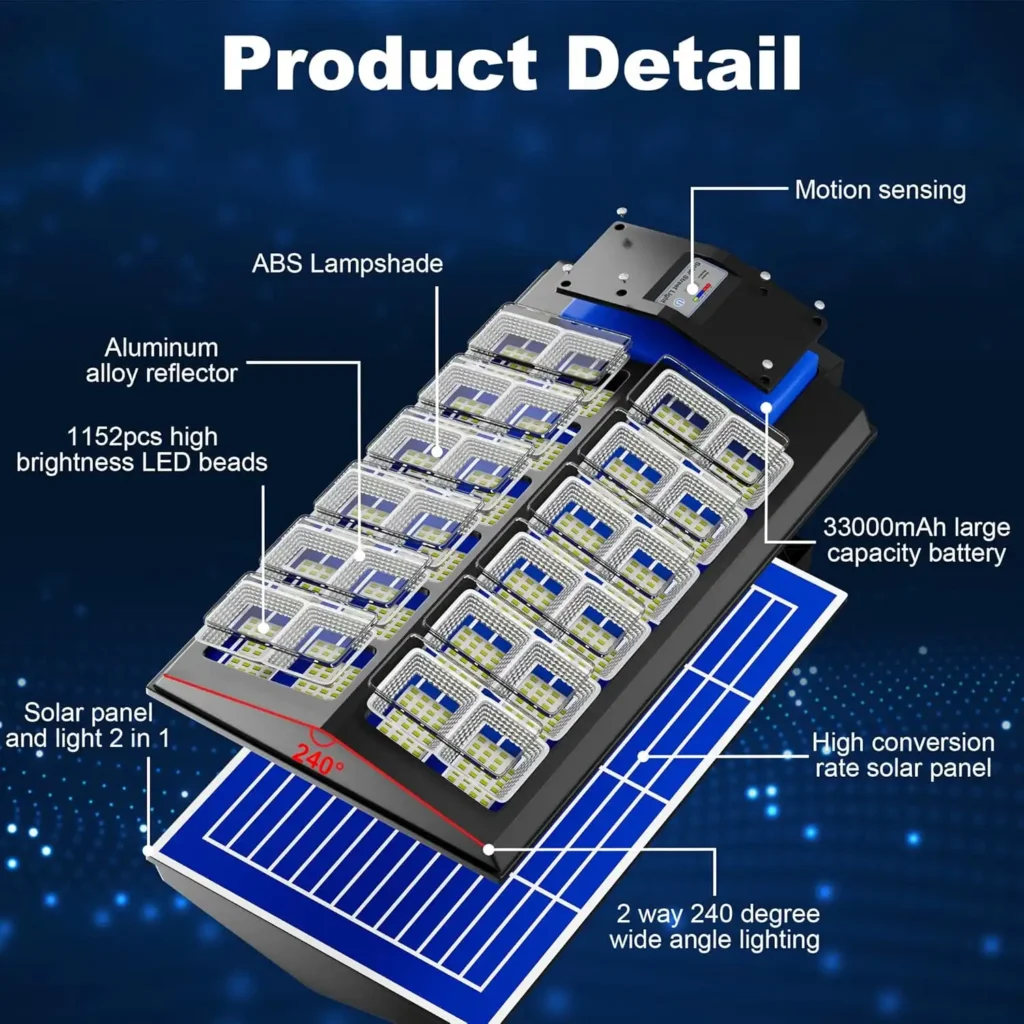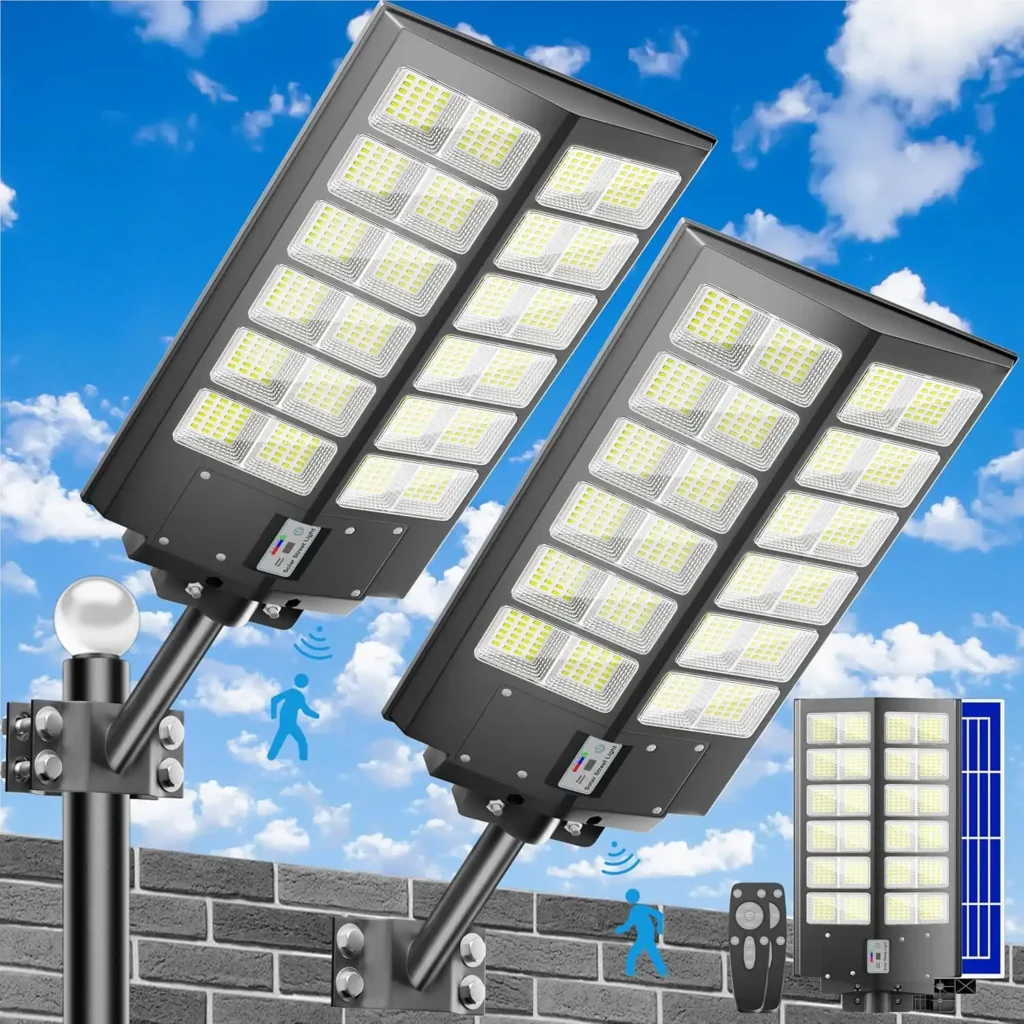 Solar-LED-Außenlampe 1600W – Automatische 240°-Beleuchtung mit Bewegungsmelder und integriertem Fernbedienungssystem