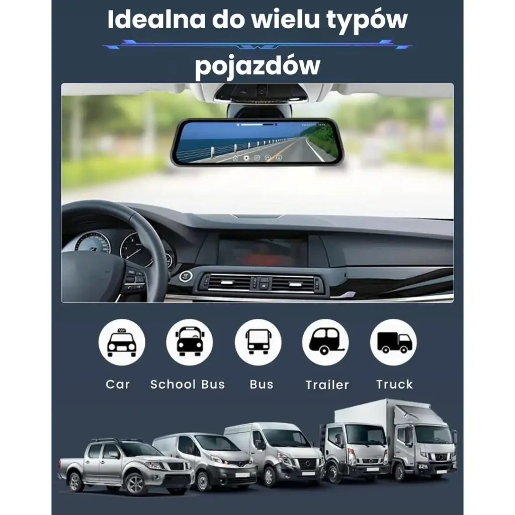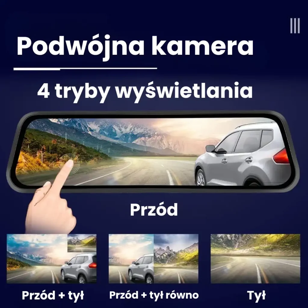 Lusterko oferuje inteligentne funkcje, takie jak automatyczne nagrywanie, dotykowy wyświetlacz i detekcja ruchu, zapewniając wygodę i pełną kontrolę podczas każdej podróży.