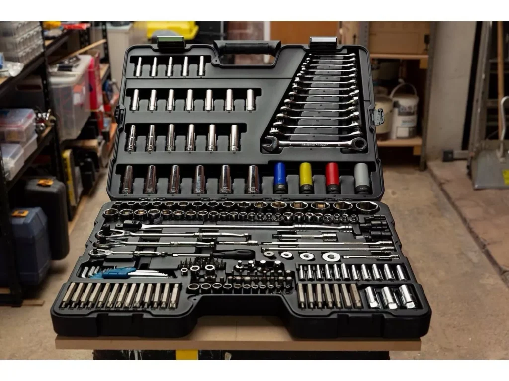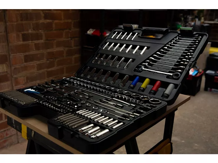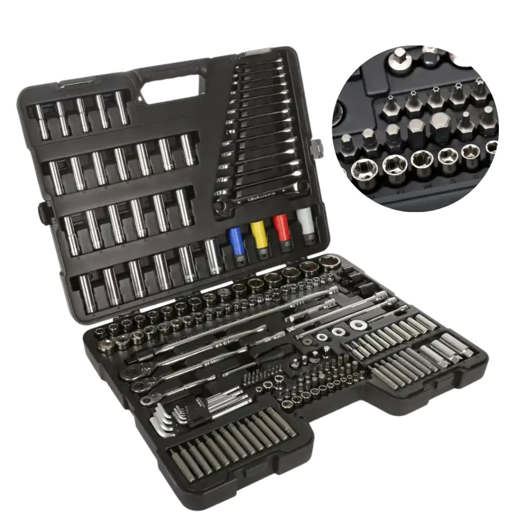 Tartalmaz 1/4”, 3/8” és 1/2” racsnikat, kombinált kulcsokat, biteket, hosszabbítókat és adaptereket minden alkalmazáshoz.